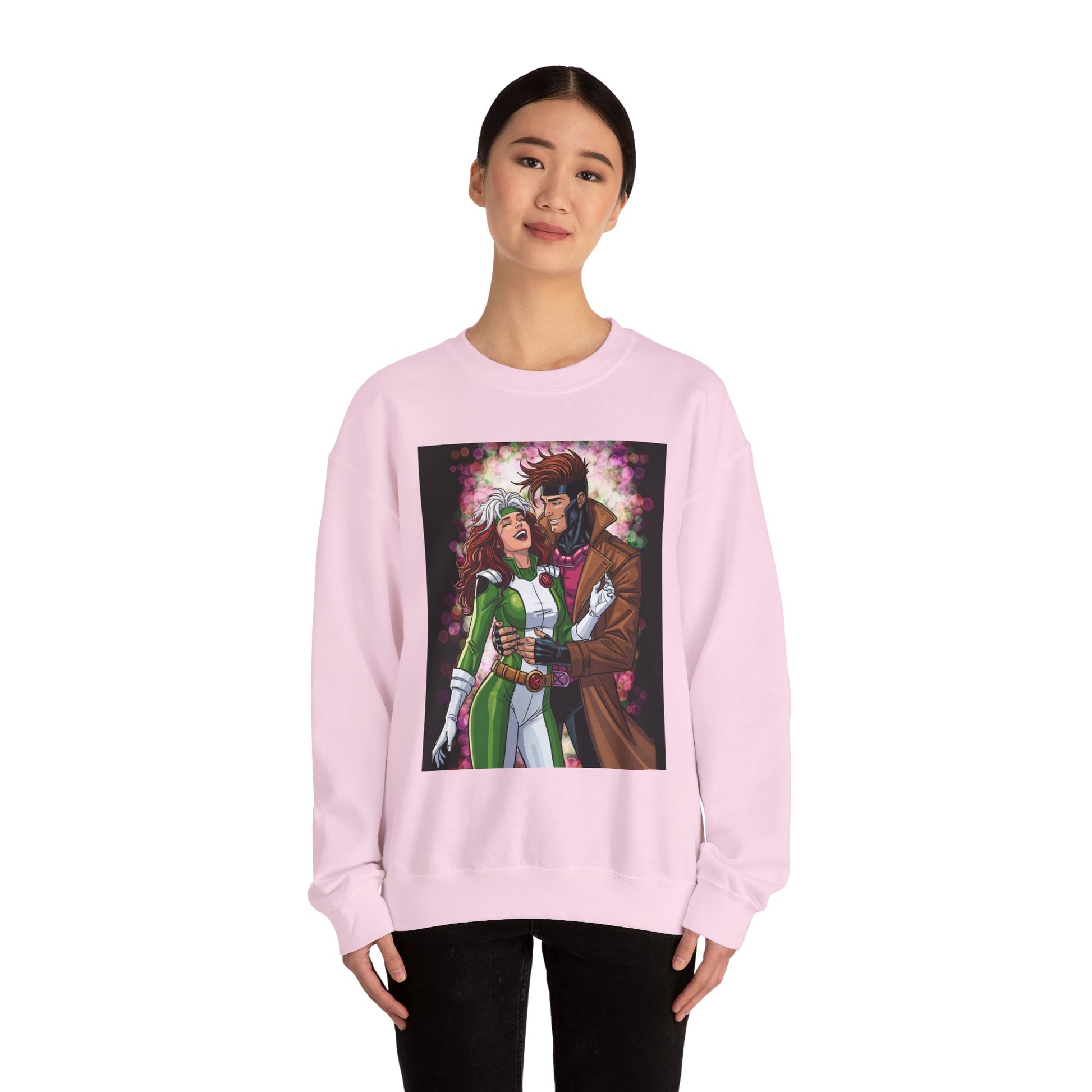 This cozy crewneck brings a warm, nostalgic moment to wearable art. Soft and slightly hefty, the sweatshirt showcases a vibrant printed scene of two characters caught in a joyful, intimate moment—bright colors and floral accents pop against the clean white fabric. It wears like a familiar favorite: roomy through the body with a classic neckline and sturdy double-needle stitching where it matters. Thoughtfully made from a 50/50 cotton-poly blend with OEKO-TEX dyes and US-grown cotton standards, it balances comfort, longevity, and responsible production. Choose this sweatshirt when you want a soft, durable layer that reads like a quiet celebration of connection and story.