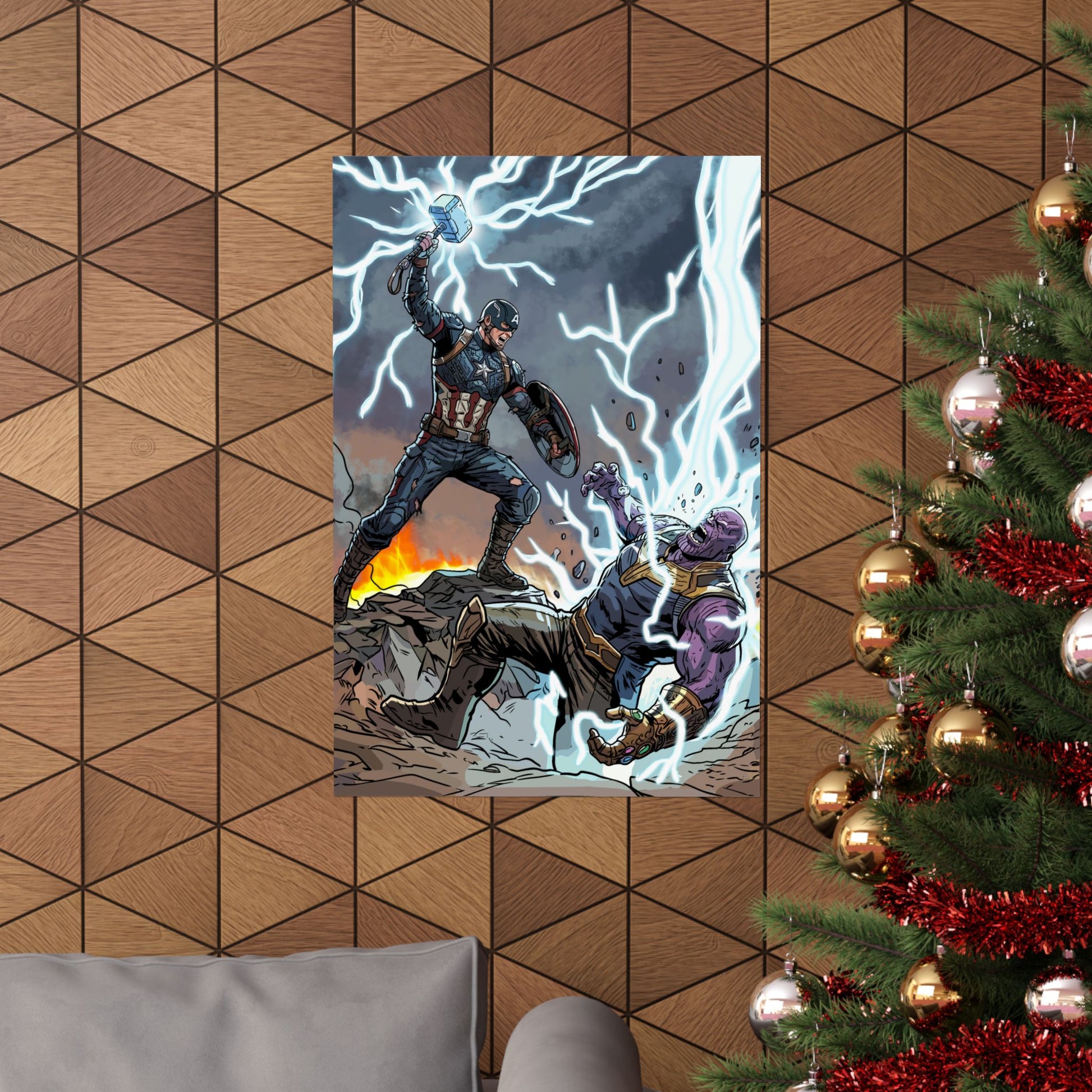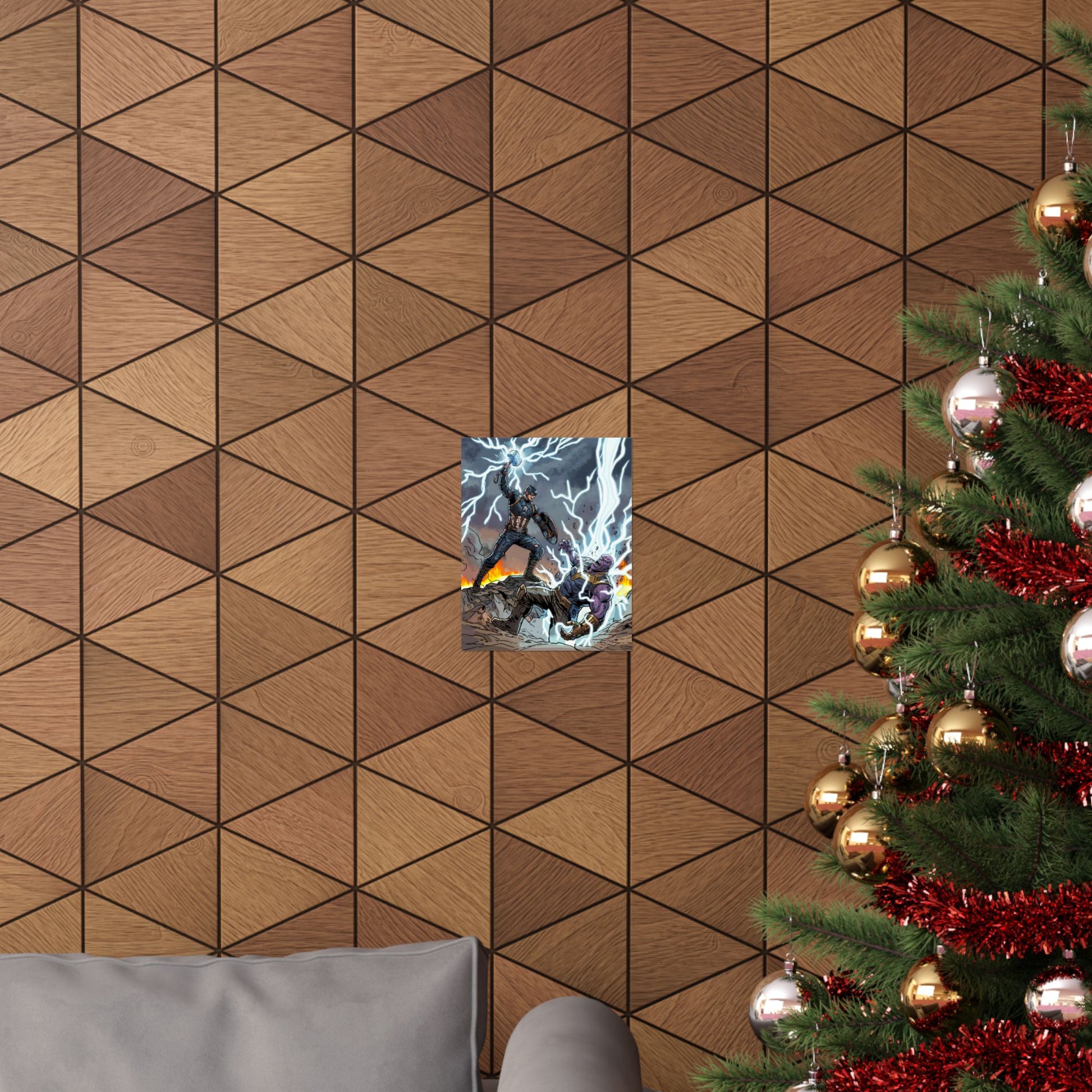 A dramatic, museum-quality matte poster that brings comic-book intensity into your living space. Printed on archival-grade paper with vibrant giclée inks, this vertical poster captures a lightning-charged showdown in razor-sharp detail and rich, lasting color. The matte finish cuts glare and gives the artwork a refined, gallery feel — great for framing or hanging as-is. Sized to fit a wide range of display needs and made for indoor settings, this print holds up over time so the energy of the scene stays bold and bright in your collection.