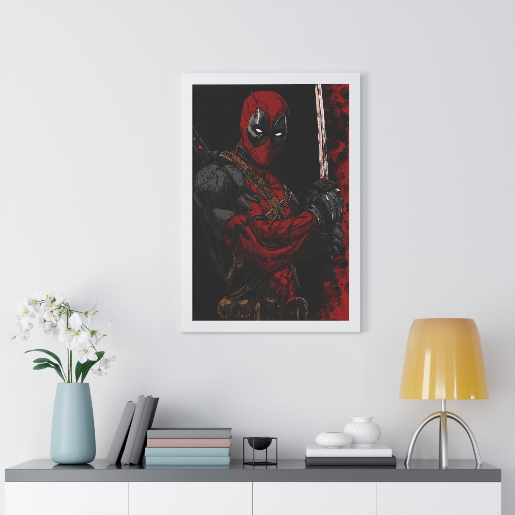 This framed vertical poster brings bold, comic‑style energy to any wall. Rich reds and deep blacks create a high‑contrast focal point that reads like a slice of action: a masked antihero stands poised with blades, muscles tensed and grit in every line. Printed on museum‑grade matte paper and protected behind a clear acrylic cover, the artwork keeps its vivid tones without glare. The slim frame — available in black, white, or walnut — adds clean architectural lines that suit a modern shelf, studio wall, or media room. Lightweight yet sturdy, it arrives ready to hang with built‑in hardware (or with included hanging pieces), so the piece moves from package to wall in minutes. For collectors who love graphic intensity and cinematic composition, this poster brings that late‑night, adrenaline‑charged mood into daily life.