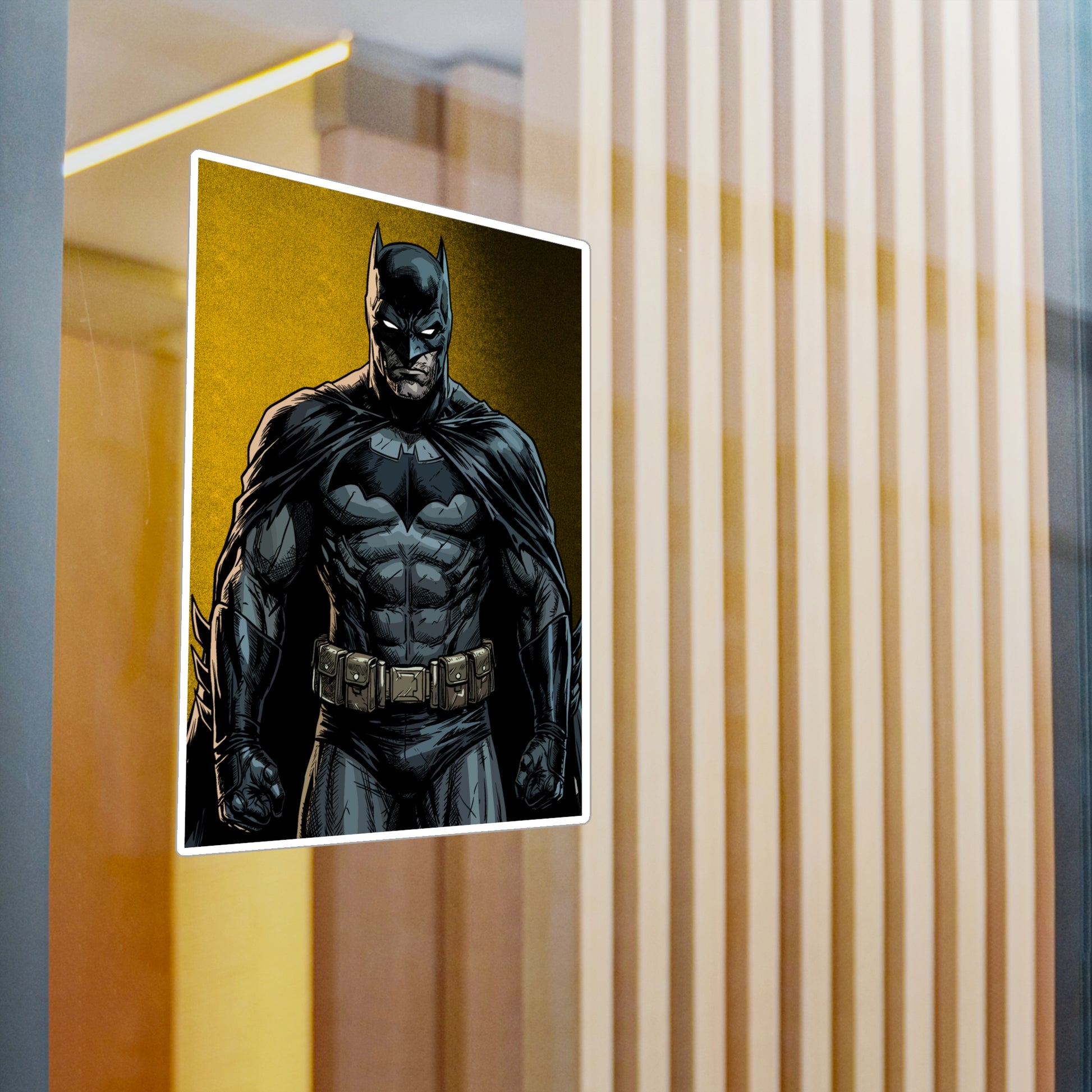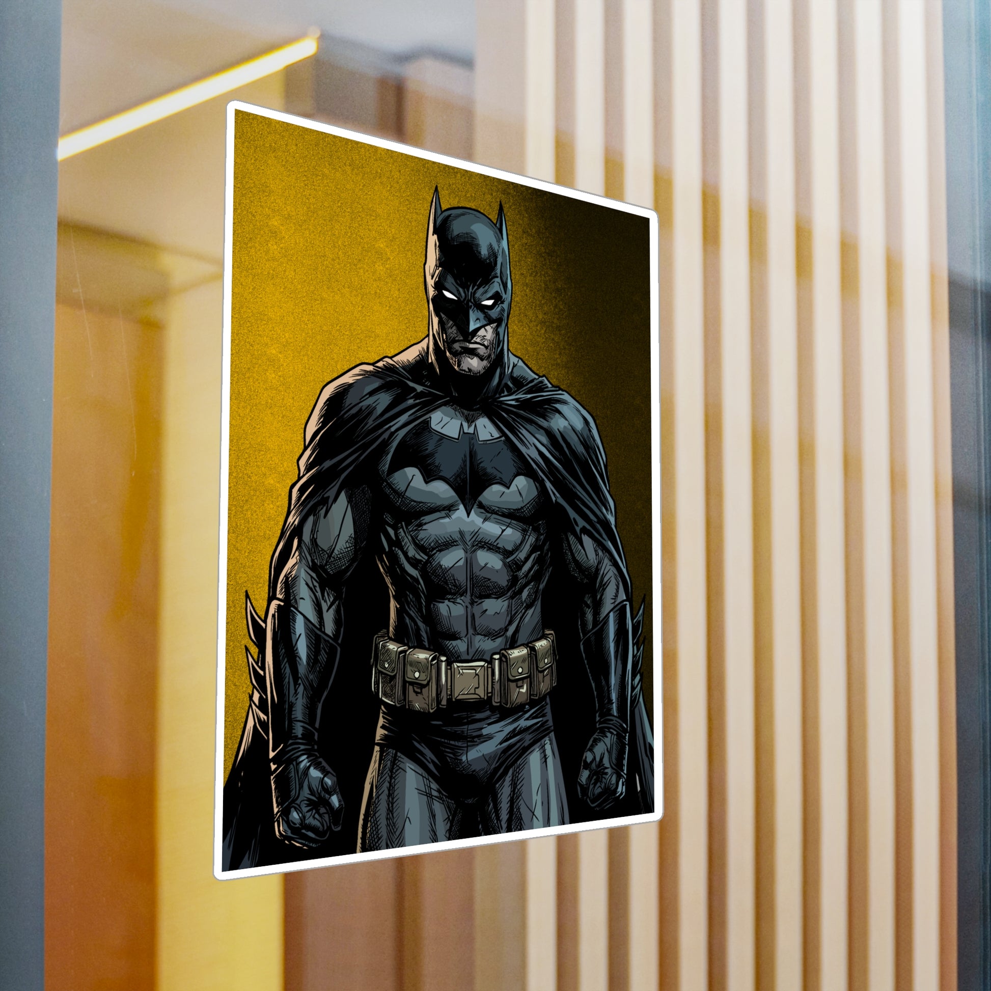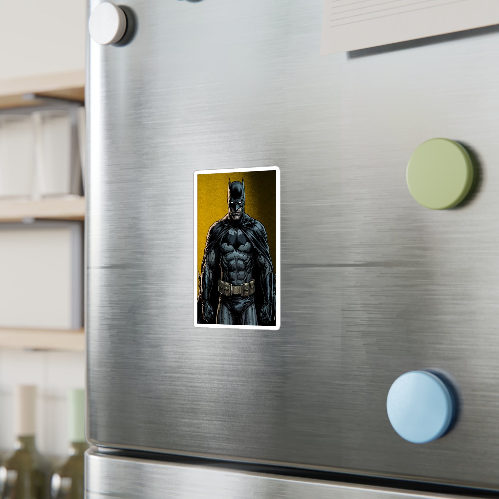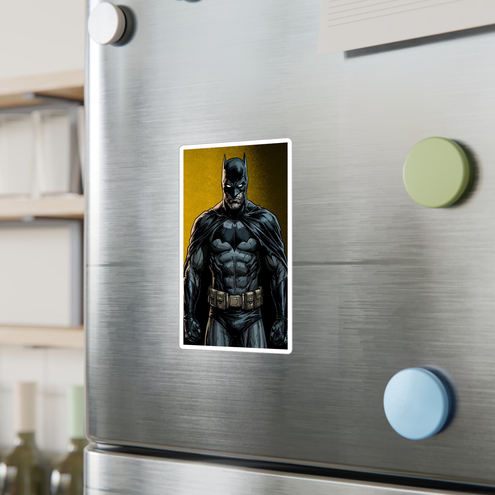 A bold, satin-finish vinyl decal that brings a dramatic, comic-style hero vibe to your laptop, water bottle, or window. The removable adhesive makes it easy to apply and reposition without sticky residue, while the 1/8" kiss-cut white border gives the art a clean, framed look. Colors stay vivid outdoors thanks to water-, scratch-, and UV-resistant printing that holds up for years. The decal’s finely detailed printing and satin surface add depth and texture, making darker tones pop against the subtle white outline. Note small, closely spaced details may merge during cutting and very light colors can show a slight grain from the print process.