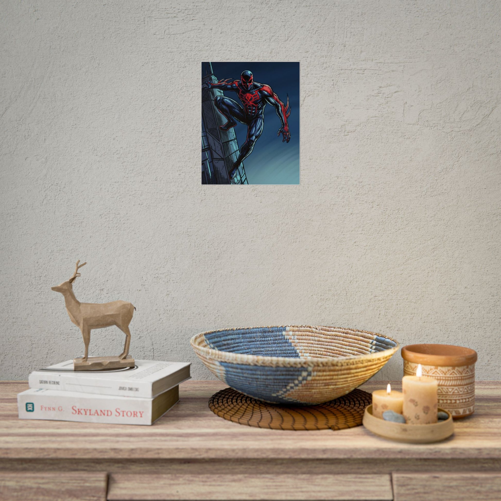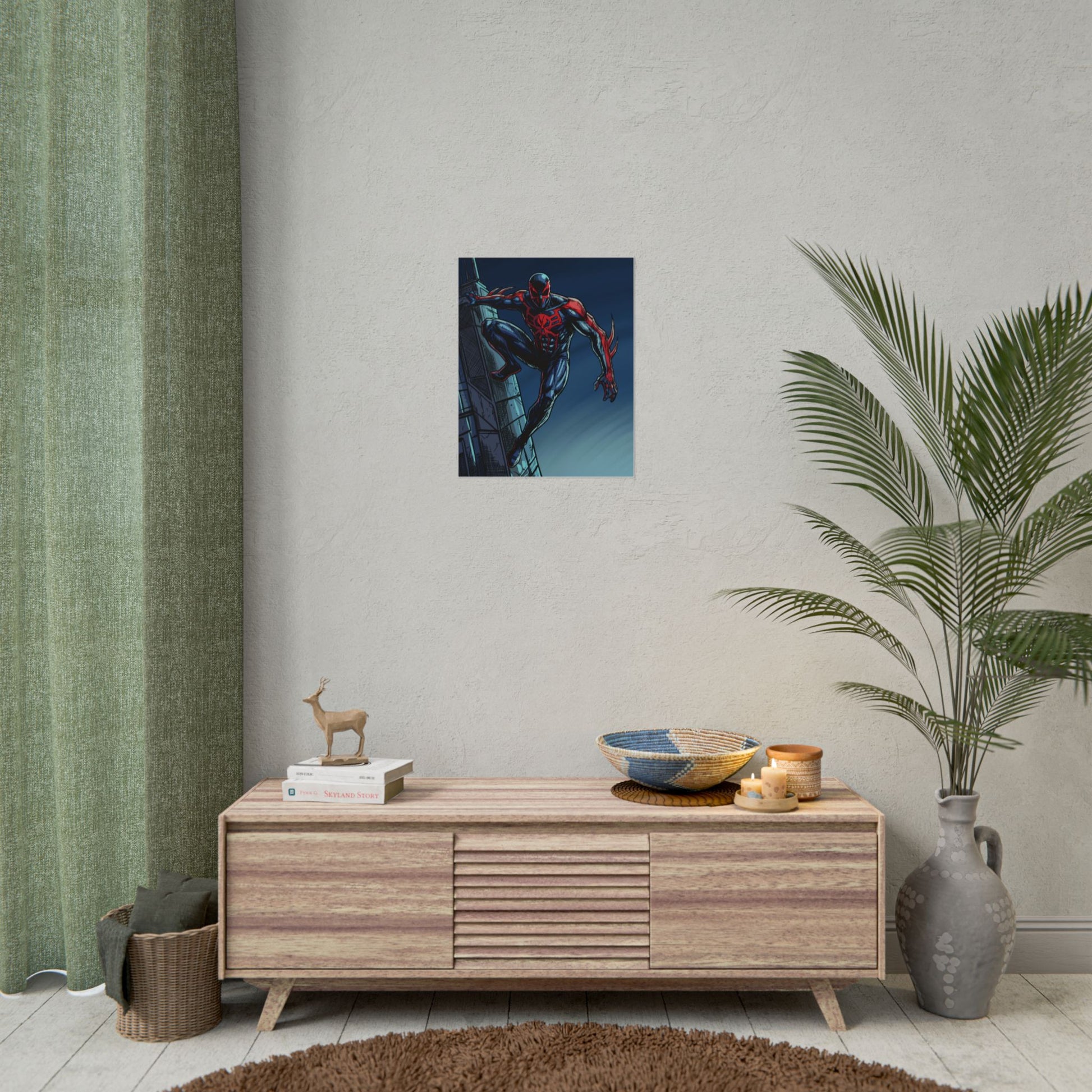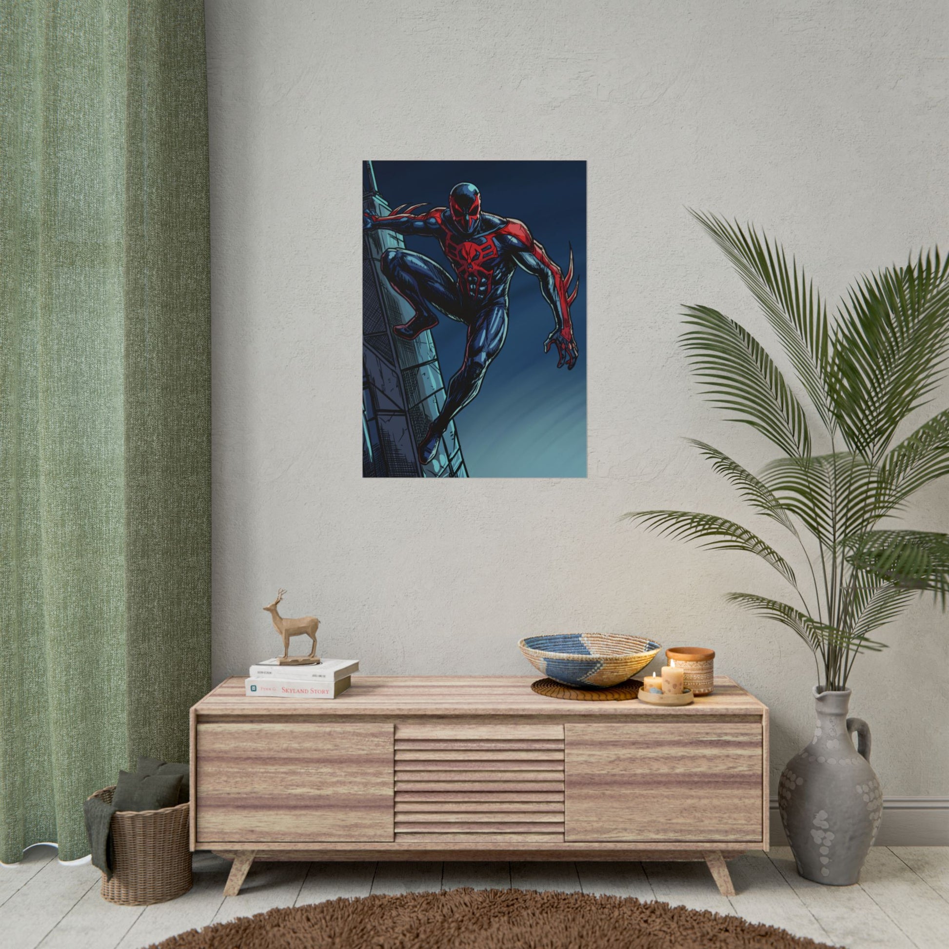 This rolled poster brings bold, comic-book energy to any wall. Deep navy and crimson inks pop on a smooth satin or textured fine art surface, capturing every dynamic line and shadow of the action scene. Hang it in a studio, bedroom, or creative workspace to add an instant focal point — the artwork reads like a freeze-frame from a rooftop chase, sparking imagination and nostalgia. Choose a semi-gloss for vivid color punch, matte for a restrained, museum-like look, or fine art for a tactile, archival print that feels like original artwork. Available in multiple sizes and orientations to suit shelves, frames, or gallery-style displays.