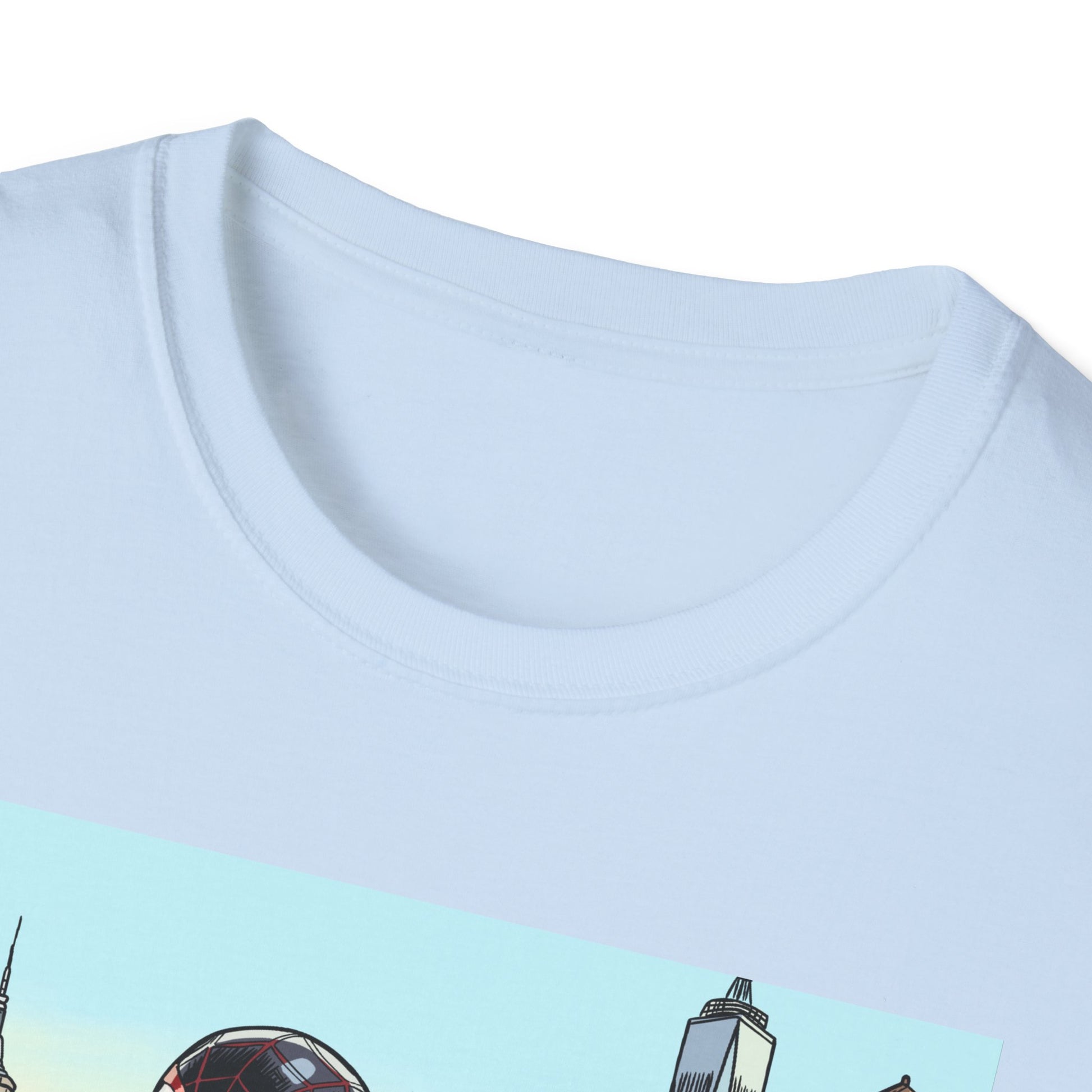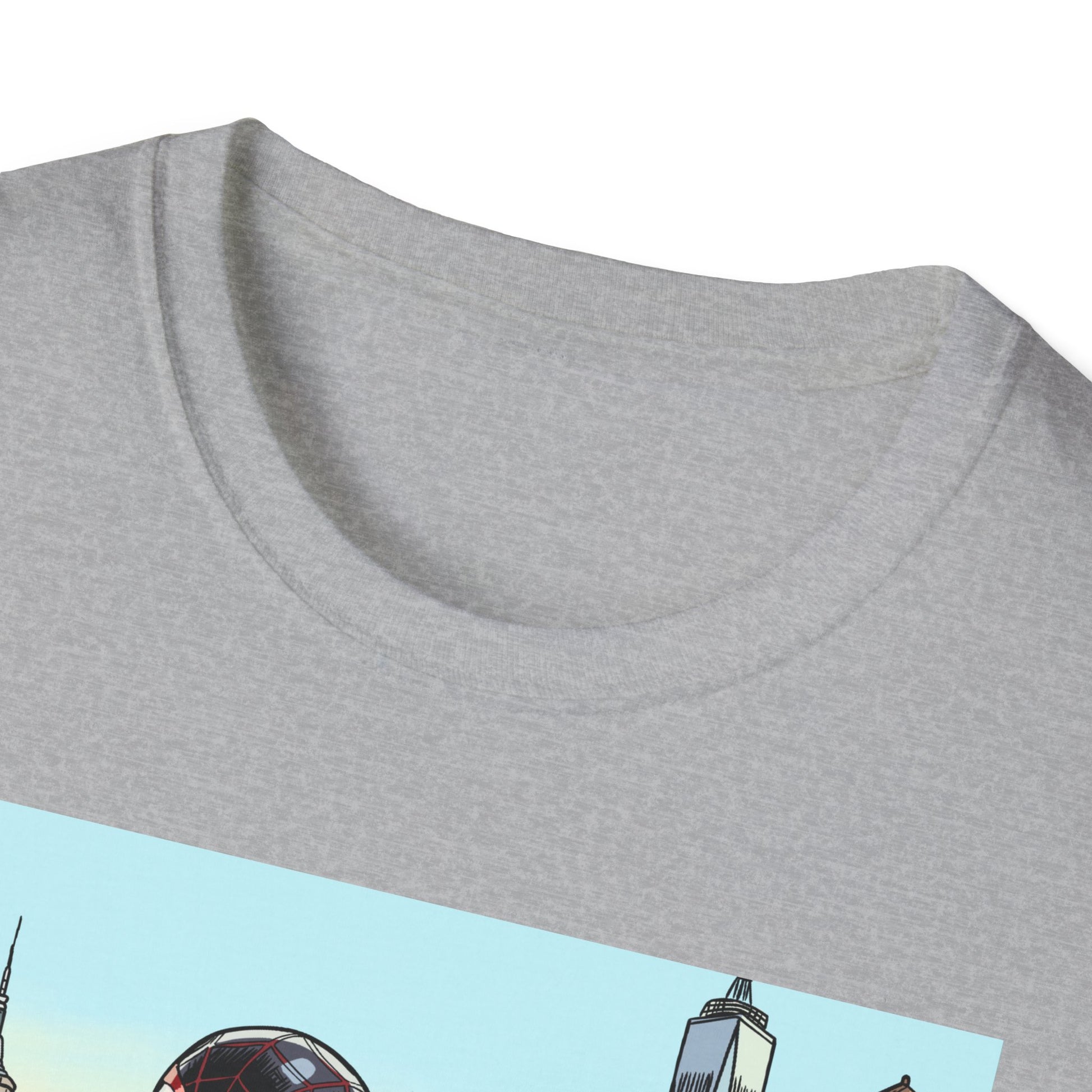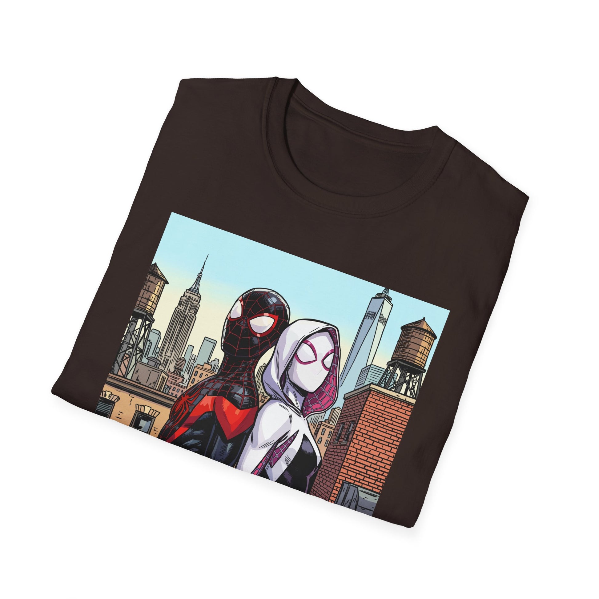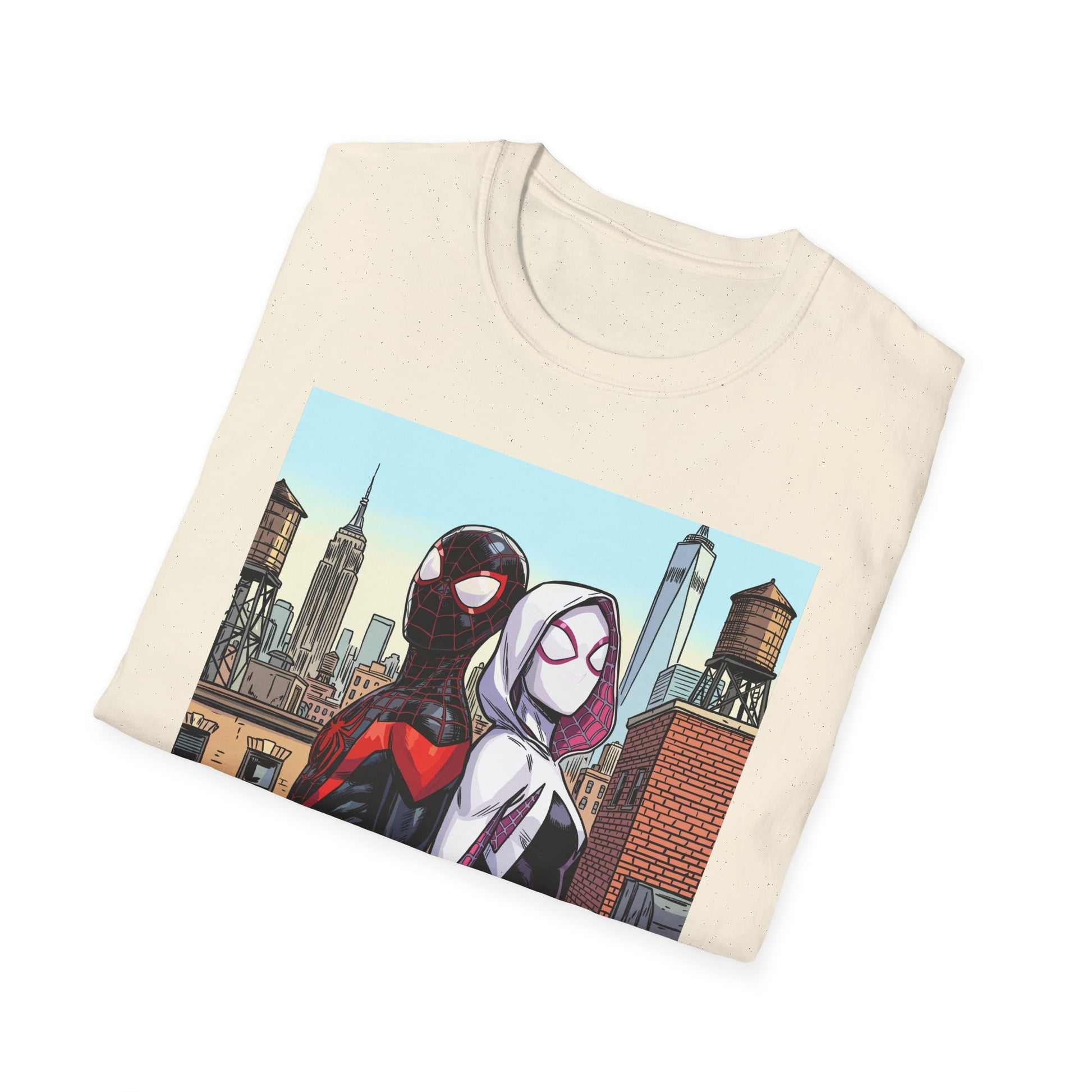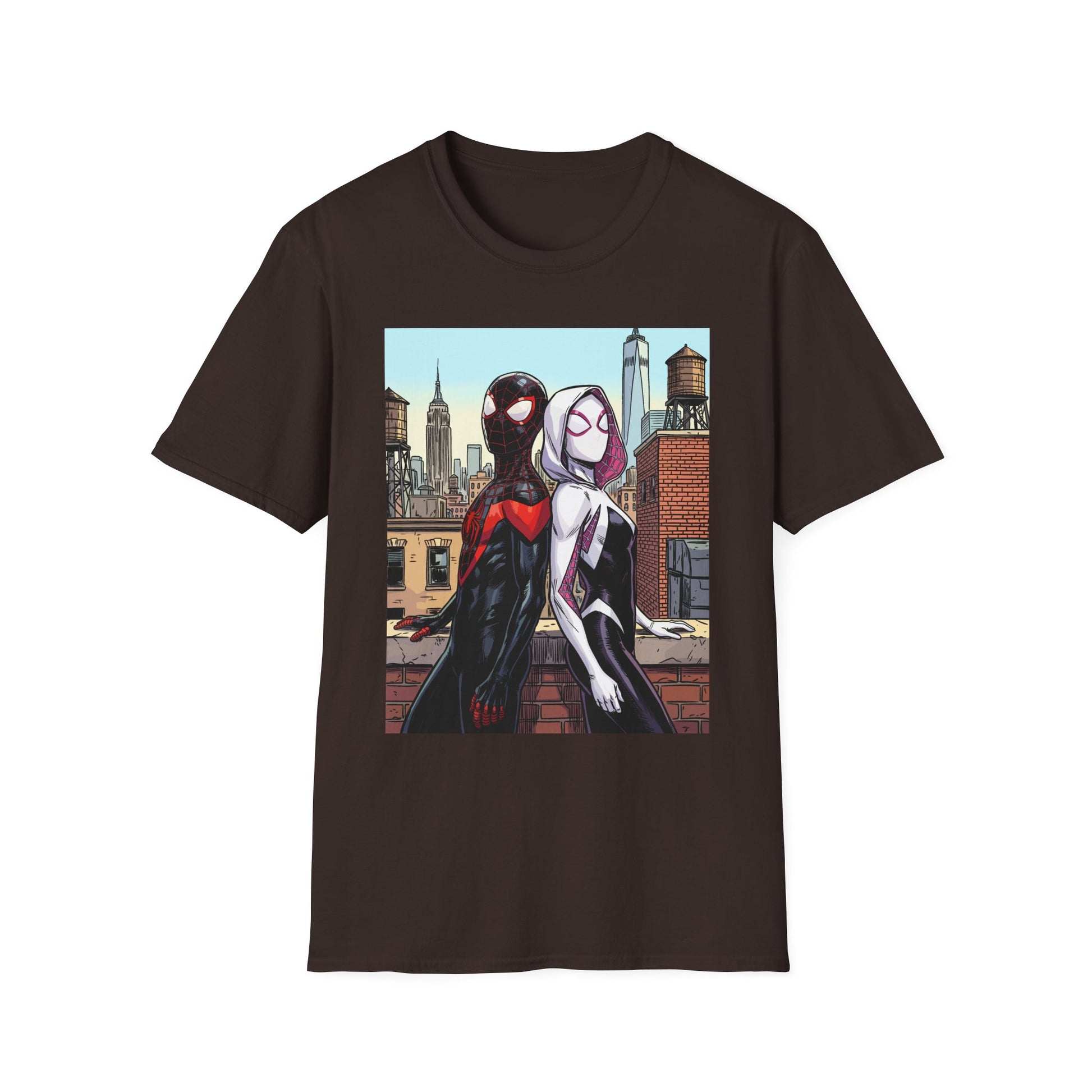 This soft, lightweight tee brings a comic-book rooftop scene to life — two masked heroes leaning back-to-back against a New York skyline. The print sits centered on a breathable, smooth cotton canvas that drapes easily and keeps colors vibrant. Wear it when you want something casual with character: layered under a jacket for city nights, on weekend coffee runs, or at fan meet-ups where the art can start conversations. The shirt feels broken-in from the first wear, with a clean crew neckline and a relaxed cut that moves with you. It’s honest, wearable fandom — an everyday piece that nods to adventure without shouting for attention.