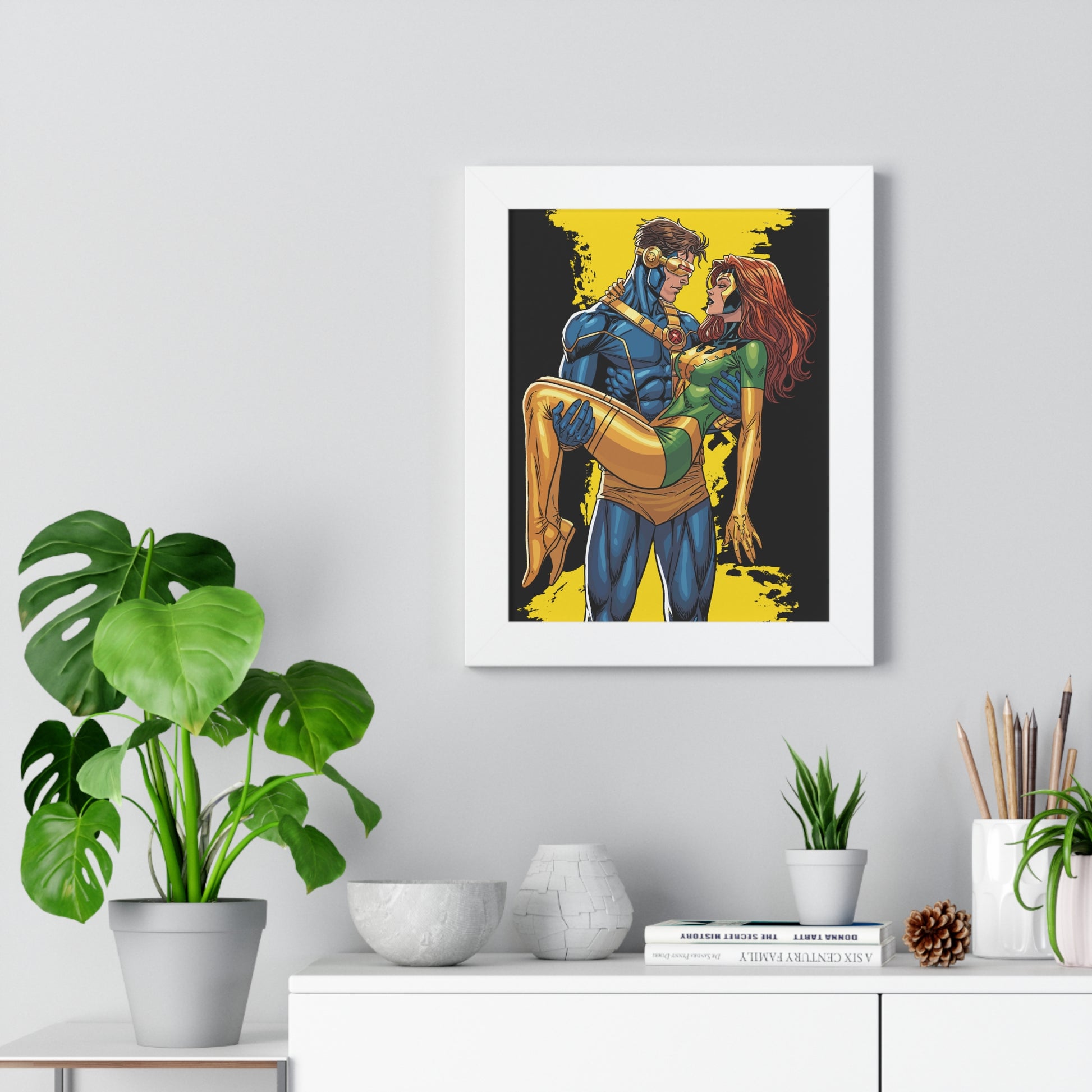 Rendered on museum-grade matte paper and framed in your choice of black, white, or warm walnut, this vertical poster brings a comic-book moment to life. The bold, cinematic artwork shows a heroic figure cradling a companion against a high-contrast splash of color — a scene that feels charged, intimate, and energetic. Lightweight Ayous or sturdy MDF framing options keep the piece stable on the wall, while the clear protective acrylic cover preserves color and detail. Built-in or included hanging hardware makes mounting straightforward, so the print arrives ready to display in a living room, studio, or themed gallery wall. This framed poster suits collectors and fans who want a polished, archival presentation of dynamic pop-culture art.
