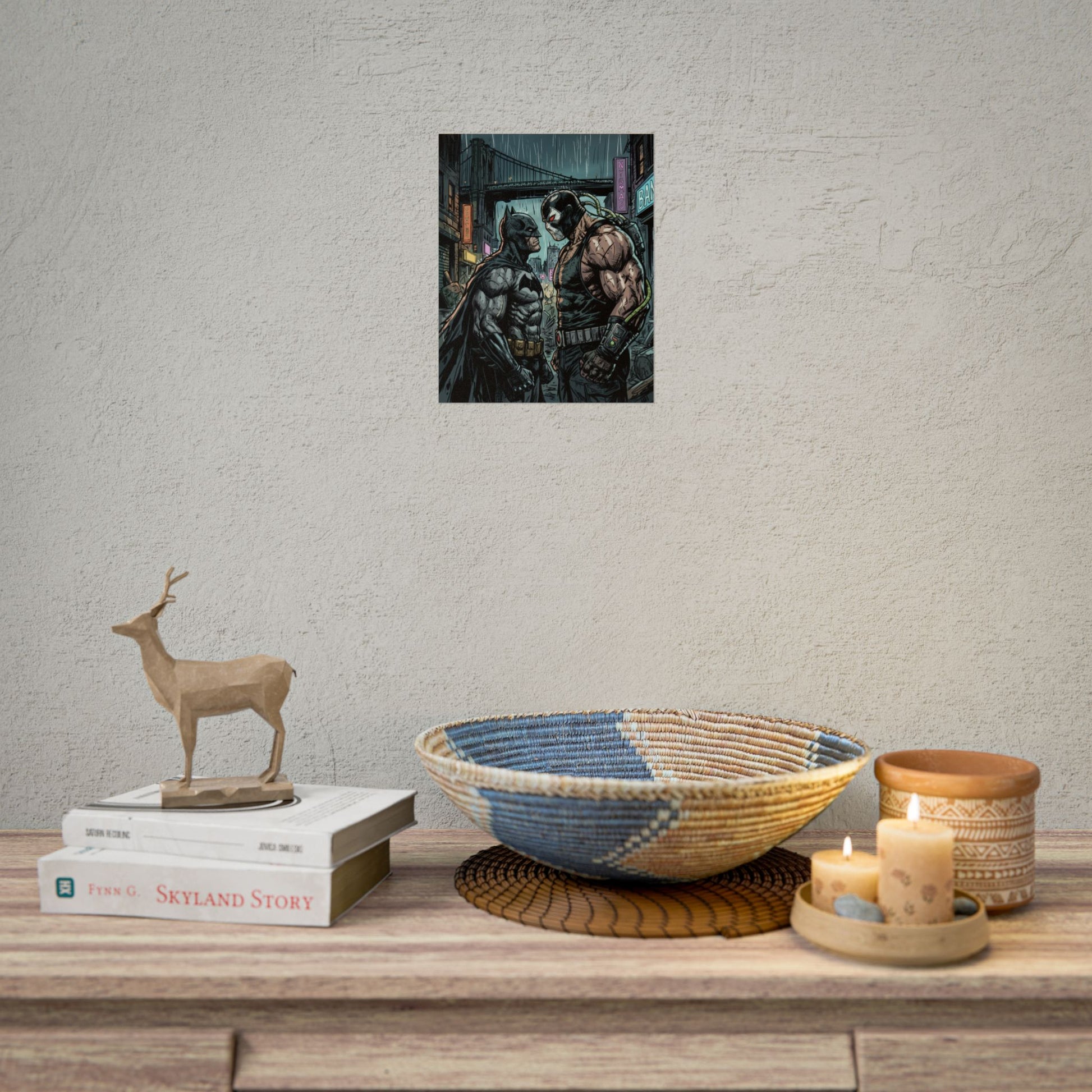 A cinematic poster that pulls you into a rain-slicked showdown. Two figures stand inches apart, thunder rolling overhead, tension visible in every shadow and soaked fabric. The illustration captures the electric stillness before a clash—dark blues, stark highlights, and saturated silhouette detail bring the moment to life. Rolled for safe shipping, this poster arrives ready to frame or pin above a workspace, gaming nook, or home theater. It sits well in spaces where moody, graphic storytelling matters and complements collections of comic art, film noir, and dramatic illustration. Choose from textured fine art, matte, or semi-glossy surfaces and sizes to match your wall and mood.