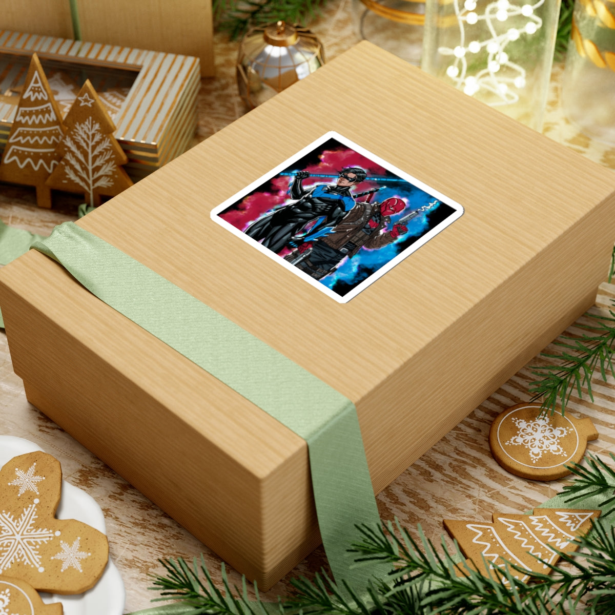 A bold, graphic sticker that captures the energy of two iconic vigilantes locked in a midnight tableau. The artwork pairs one hero’s sleek midnight silhouette with the villain’s striking red accents, creating a dramatic contrast that pops on laptops, journals, and window panes. The glossy finish intensifies the ink’s saturation so the scene reads clearly at a glance. Stick this where you want to signal your love of gritty, comic-book storytelling — a quiet nod to late-night patrols, rooftop showdowns, and complicated alliances that never play by the rules.