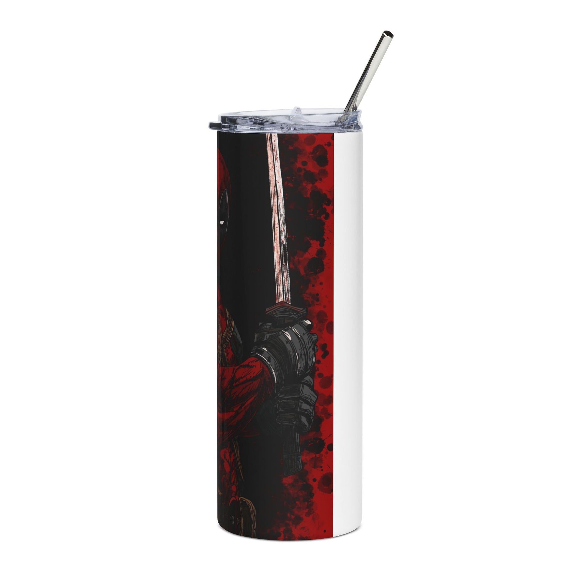 This 20 oz stainless steel tumbler carries bold, character-driven artwork that brings energy to every sip. Tall and slim, it slips into cup holders and backpacks while the glossy protective varnish keeps colors vivid through daily use. The included lid and reusable straw make it easy to drink on the go — from morning commutes to long studio sessions. Durable stainless construction resists rust and gives the tumbler a reassuring weight in hand. With a full 360° printable area on a smooth cylindrical body, the design wraps seamlessly around the cup for an immersive visual impact.