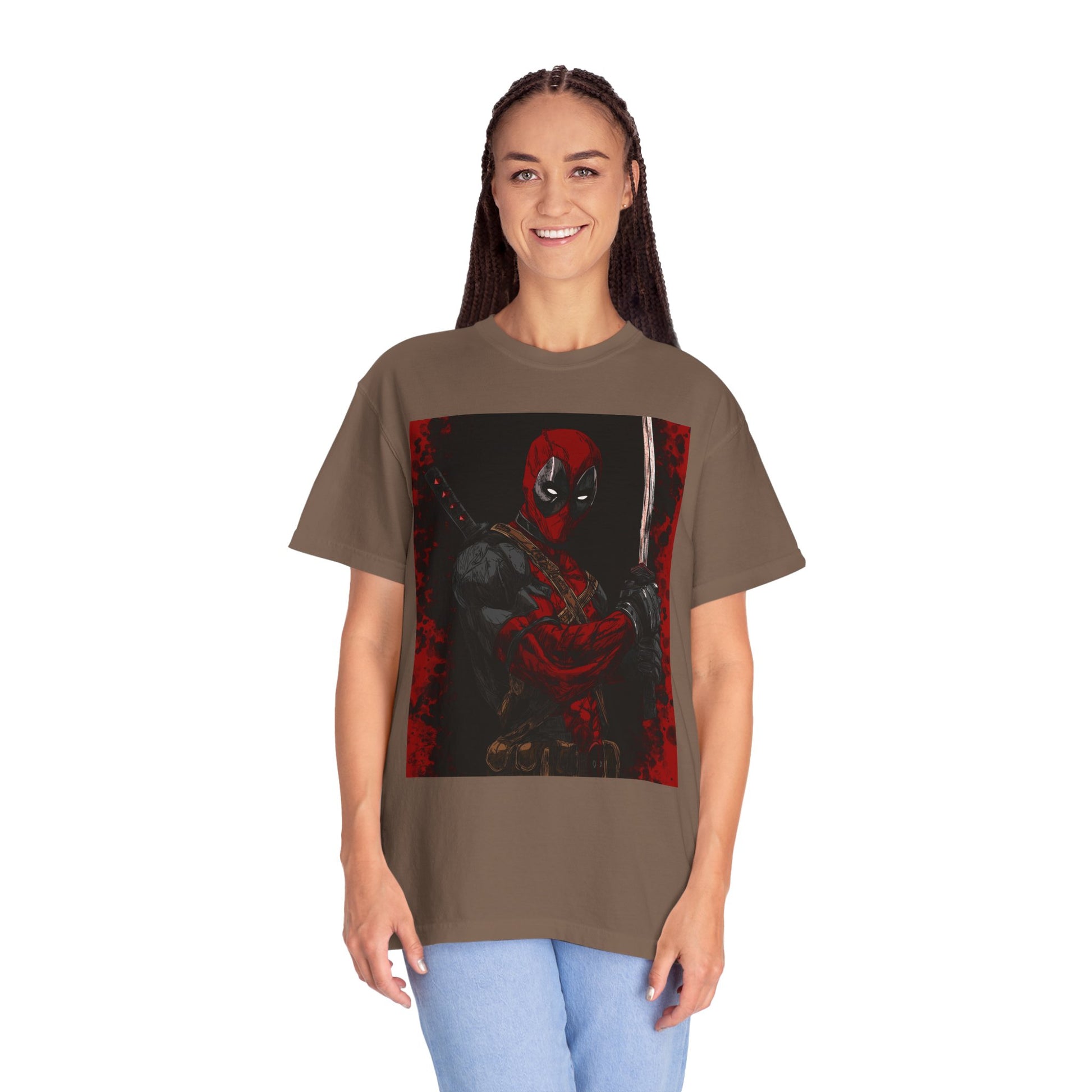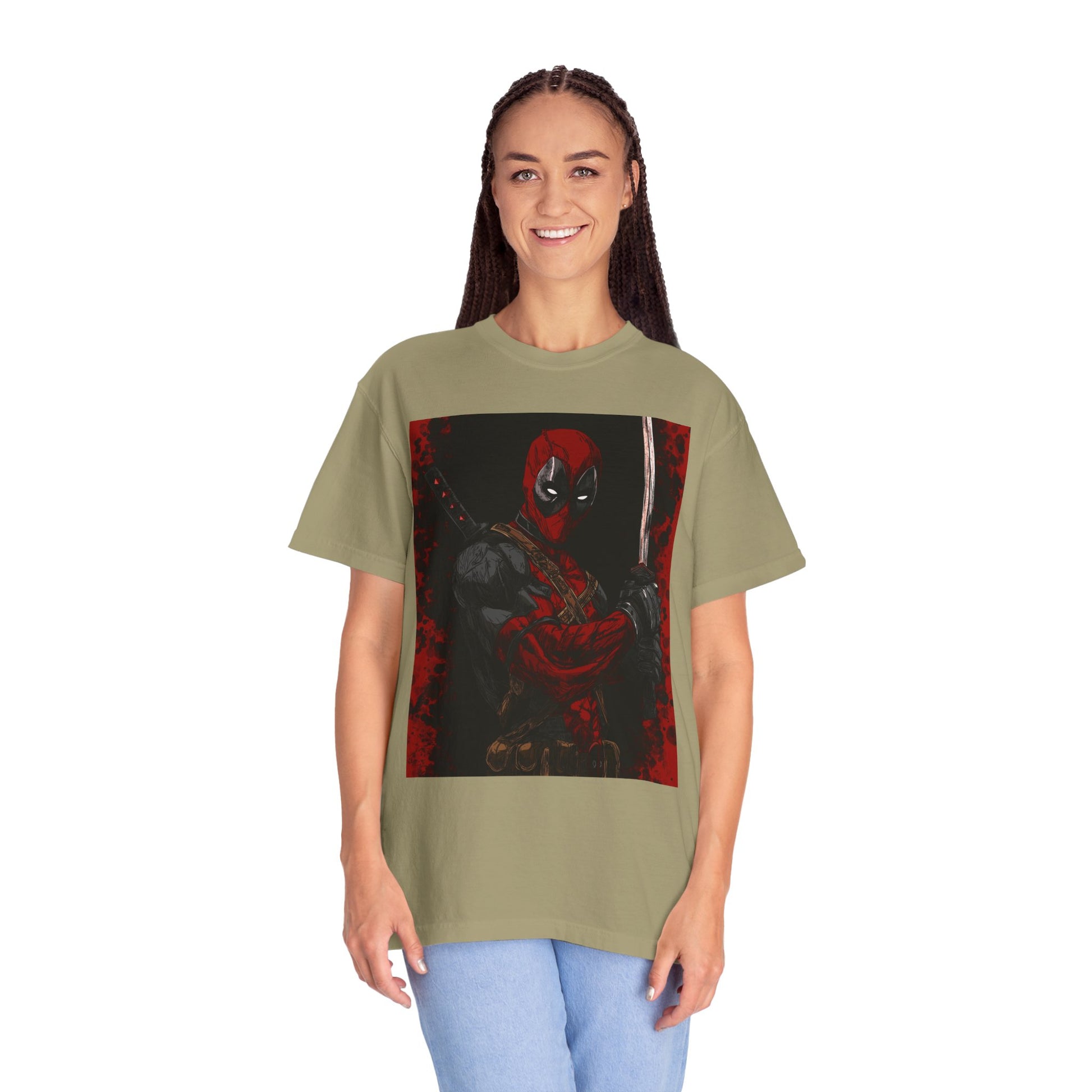 This relaxed-fit tee brings a bold, graphic energy to everyday wear. The garment-dyed cotton has a lived-in softness and subtle color depth that makes the printed illustration sit like a framed moment on the chest. It drapes casually over the body and handles repeated wear thanks to reinforced double-needle seams and a tubular knit that keeps side seams out of the picture. Wear it layered under a jacket for late-night runs or on its own when you want the artwork to speak loud and clear. The medium-weight cotton gives structure without feeling stiff; pre-shrunk fabric and a sewn-in label keep the fit consistent and comfortable. Made with attention to detail in Honduras, this tee balances durability and personality for fans who favor statement graphics and dependable everyday pieces.