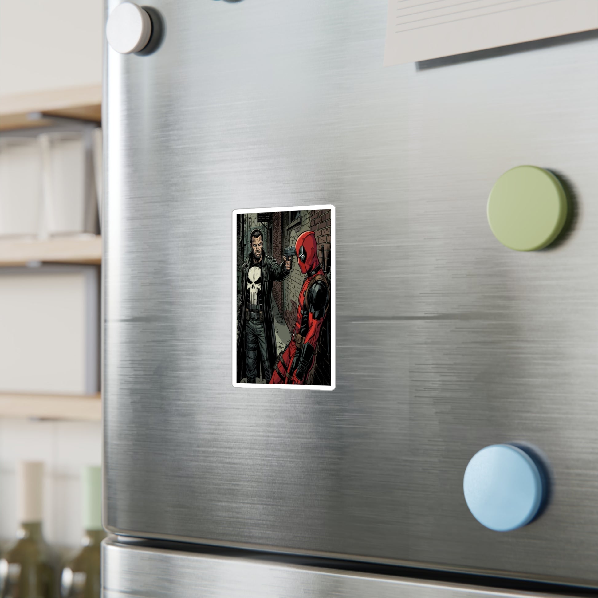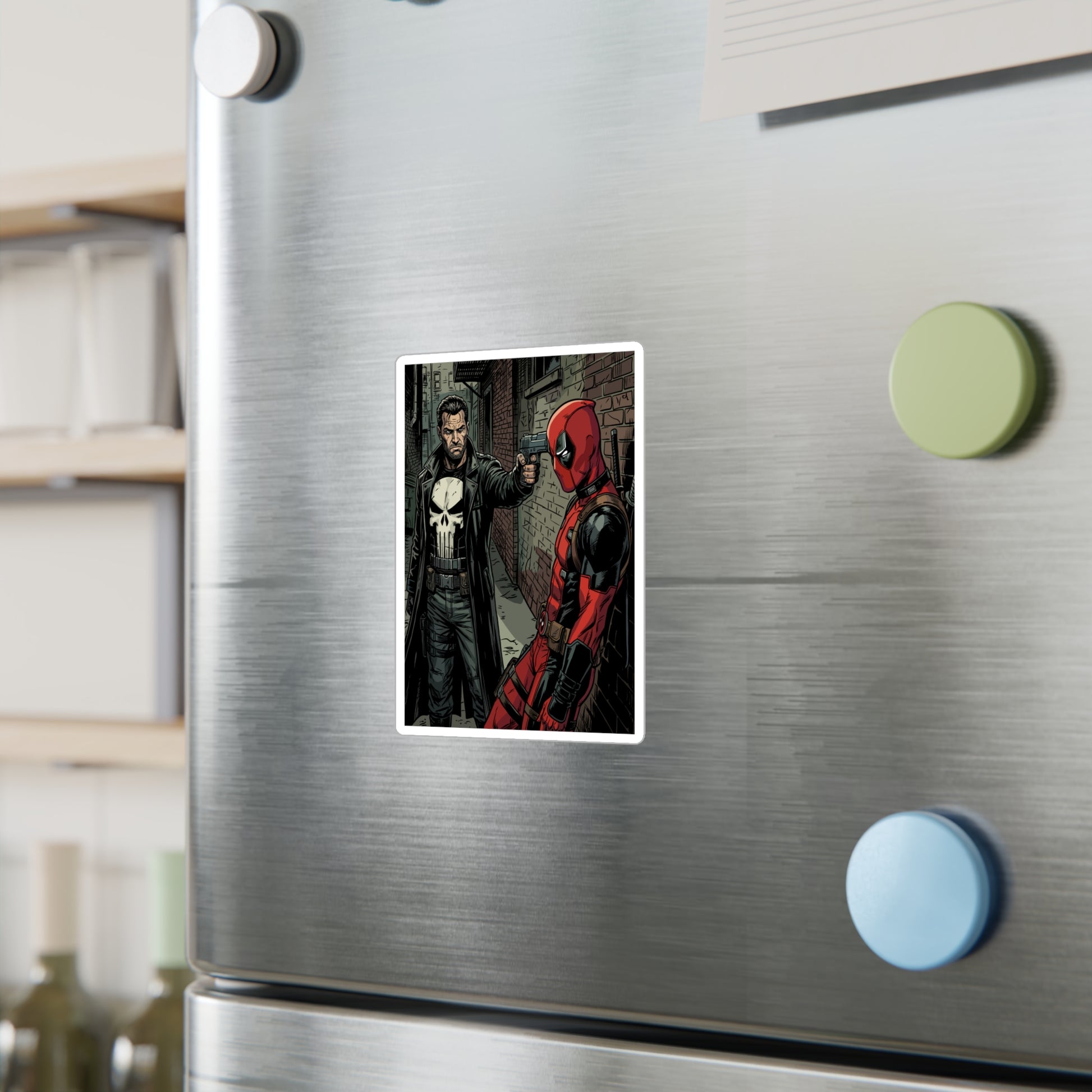 These kiss-cut vinyl decals bring bold, comic-book energy to gear, windows, and sketchbooks. Printed on satin-finish white vinyl, the artwork pops with vivid color and crisp lines while a subtle 1/8" white border keeps the shape clean. The removable adhesive peels away without residue, and the durable vinyl resists water, scratches, and UV fading for up to three years—so your decal looks great whether it’s slapped on a laptop, water bottle, or storefront glass. Designs with very fine, closely spaced details may print as a single shape; lighter colors can show slight graining due to the print process. Assembled in the USA from globally sourced parts, these stickers arrive ready to apply and enjoy.